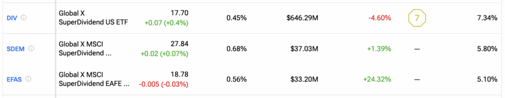 Dividend ETFs remain a favorite among income-seeking investors, but not all are created equal. Using TipRanks’ High Dividend Yield ETFs tool, we have shortlisted three ETFs: Global X SuperDividend US ETF (DIV), Global X MSCI SuperDividend Emerging Markets ETF (SDEM), and Global X MSCI SuperDividend EAFE ETF (EFAS) that offer high dividend yields of over 5%.