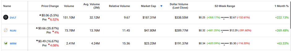 New Era Energy & Digital (NUAI) – New Era Energy & Digital is an energy company, involved in the exploration and production of helium, oil, and natural gas in the U.S. On Monday, NUAI had a Dollar Volume of $289.77 million, accompanied by a stock price surge of nearly 36%.