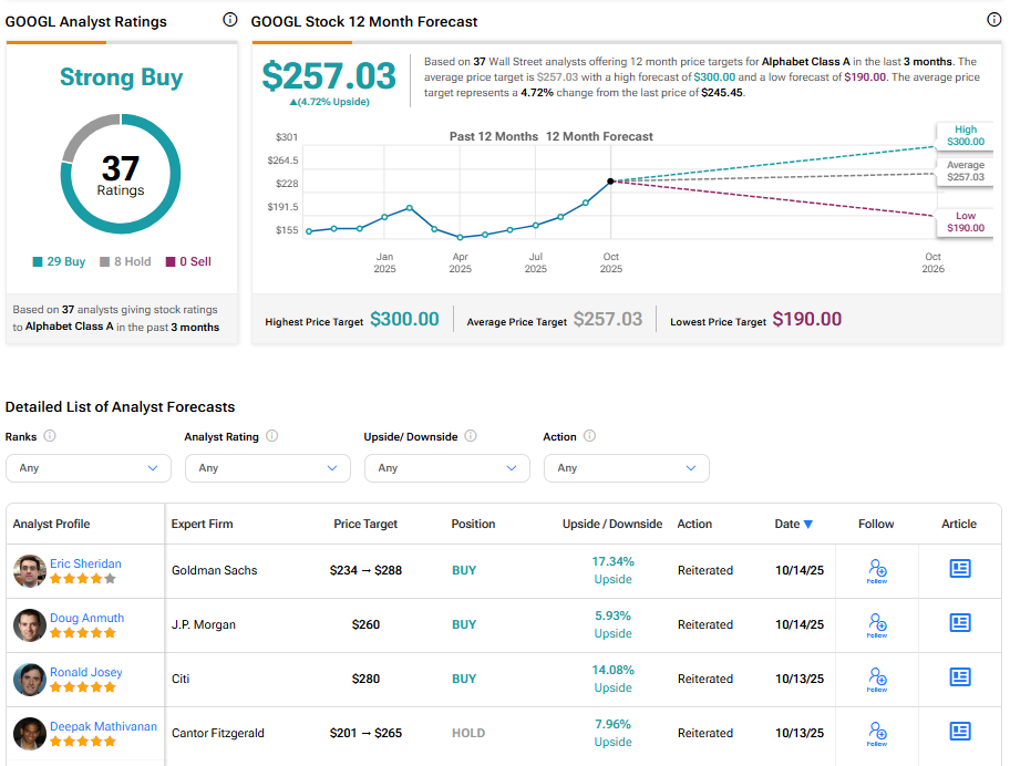 On the Street, Alphabet continues to boast a Strong Buy consensus, based on 37 analysts’ ratings. The average GOOGL stock price target stands at $257.03, implying a 4.72% upside from the current price.