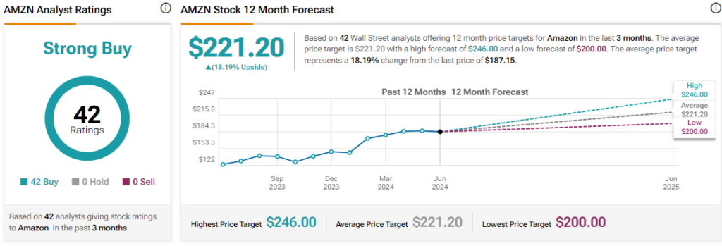 Amazon’s share price has jumped by nearly 48% over the past year amid a broad-based rally in the tech sector. Overall, the Street has a Strong Buy consensus rating on the stock, alongside an average AMZN price target of $221.20.