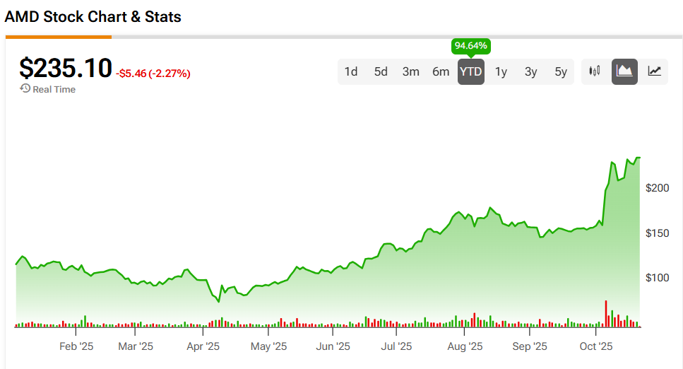 AMD stock was down 2.27% on Tuesday but remained up 94.64% year-to-date. The shares have also rallied 56.12% over the past 12 months. Today’s drop may be tied to the top clock speed of the Ryzen 9 9950X3D2. Its alleged 5.6 GHz maximum would be below the 5.7 GHz offered by the Ryzen 9 9950X3D.