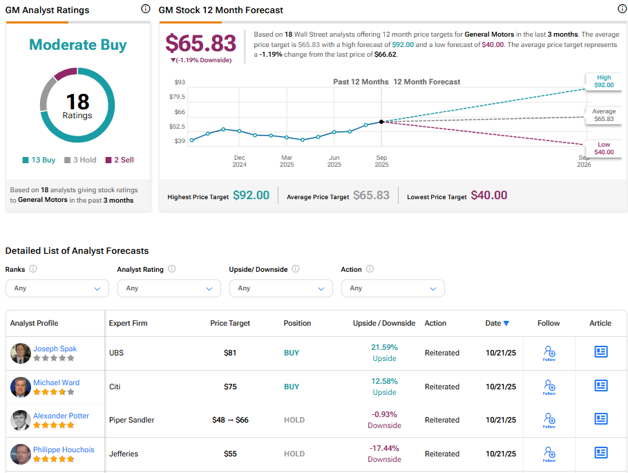 Similarly, Goldman Sachs’ Mark Delaney maintained a Buy rating and $74 target on GM stock, calling its Q3 report strong across the board. He noted that the company expects 2026 to outperform 2025, citing progress on EV profitability, warranty costs, and regulatory headwinds.