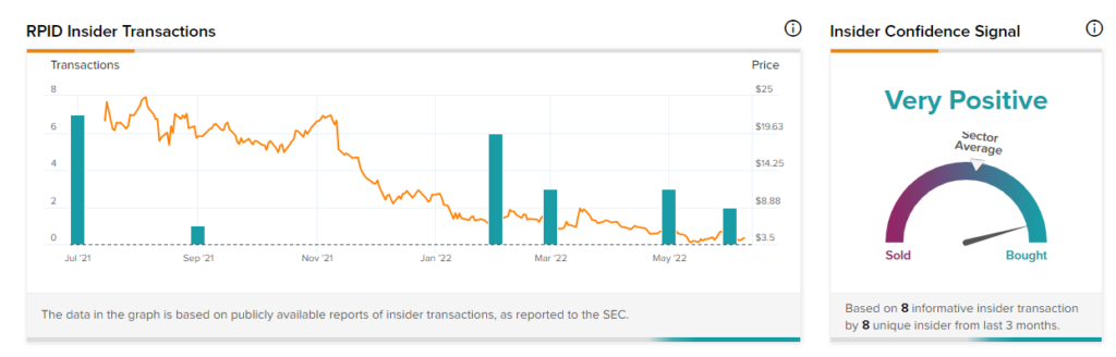 Interestingly, per SEC (Securities and Exchange Commission) filings and TipRanks’ Insider Trading Activity tool, over the last month, Kennedy Lewis Management LP purchased 275,120 shares of RPID valued at $1.24 million. It includes this week’s purchase of 60,100 shares for $0.28 million.