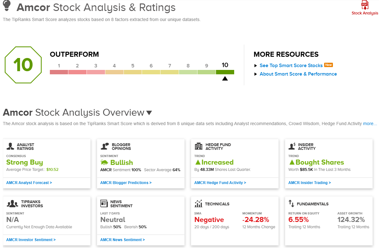 Zekauskas goes on to rate AMCR shares as Overweight (Buy). He complements that rating with a $10 price target that suggests a one-year upside potential of 23%. (To watch Zekauskas’s track record, click here.)
