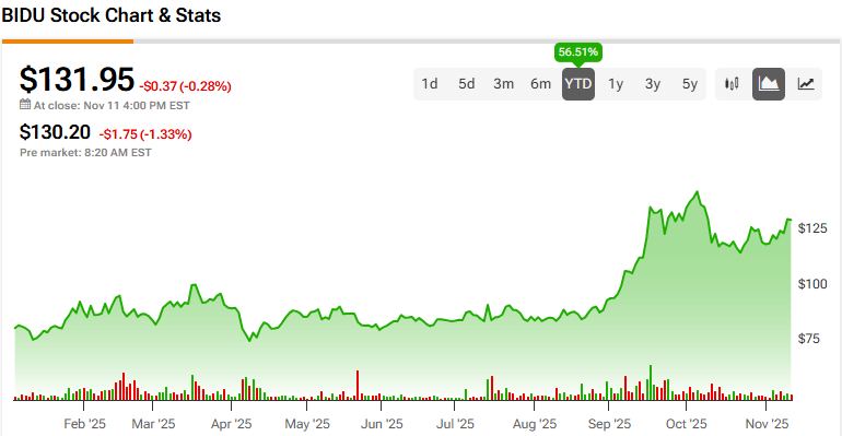 Meanwhile, BIDU shares dropped 0.28% on Tuesday, closing at $131.95.