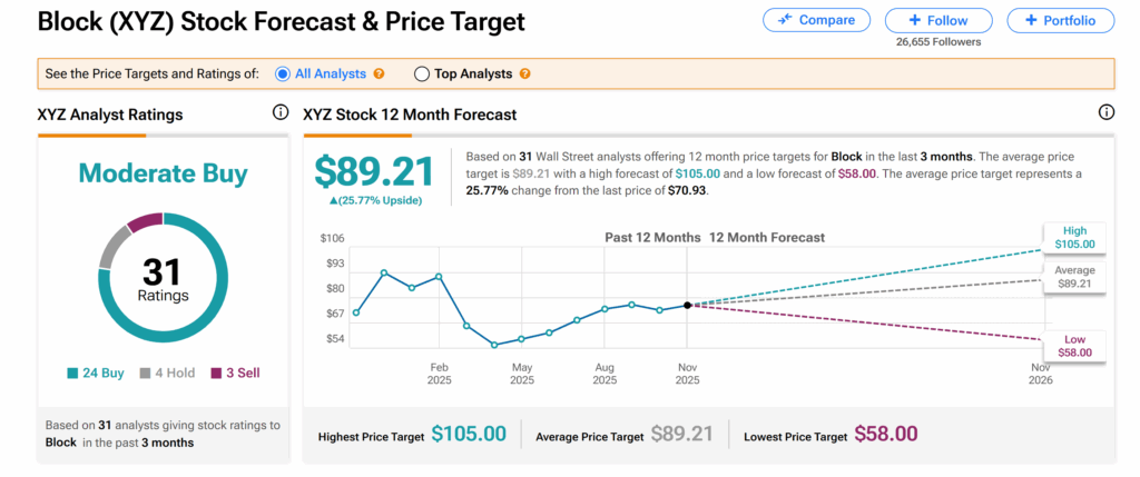 At $89.21, the average XYZ price target suggests more than 25% growth potential from the current trading level.