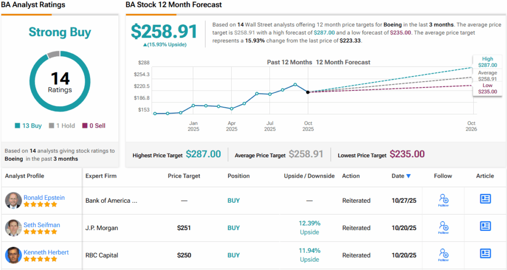 Almost all analysts agree with that stance; barring one skeptic recommending a Hold, all 12 other BA reviews are positive, making the consensus view here a Strong Buy. The $258.91 average price target factors in a one-year gain of ~16%. (See Boeing stock forecast)