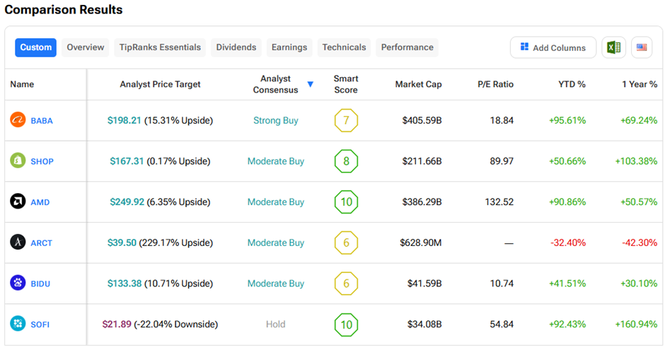 Let’s see how these stocks perform using the TipRanks Stock Comparison Tool: