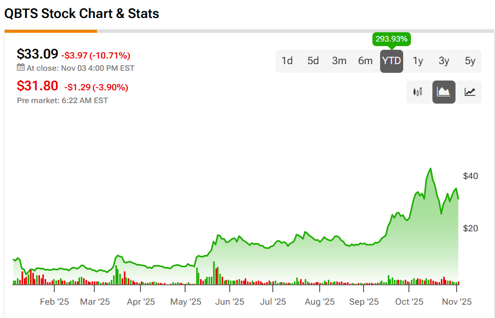 Meanwhile, QBTS shares dropped yesterday by over 10%, to close at $33.09. However, the stock is still up 293% year-to-date.