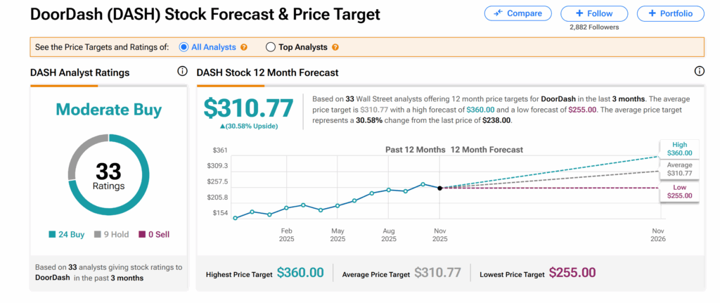 Moreover, the average DASH price target of $310.77 indicates about 31% upside potential from the current trading level.