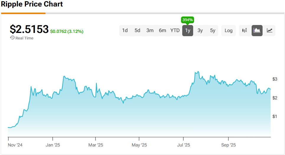 XRP (XRP-USD) investors have enjoyed a solid stretch over the past year, supported by a friendlier regulatory tone from the new administration. That improved backdrop came to a head when the SEC ultimately walked away from its long-running lawsuit accusing Ripple Labs of selling XRP as an unregistered security. That had been a major overhang on sentiment, and the result has been a 12-month surge of 394%.