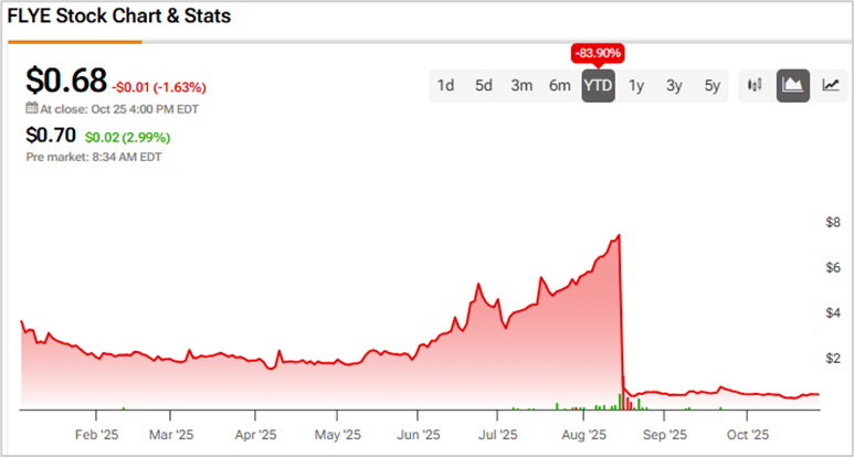 The information became clear on August 14, 2025, when Fly-E filed a form NT 10-Q, notifying of its inability to timely file Form 10-Q for the first quarter of fiscal year 2026 with the SEC. Fly-E disclosed a 32% drop in net revenue due mainly to selling fewer units. The decline was largely caused by recent lithium battery accidents involving their E-Bikes and E-Scooters, which made customers hesitant to buy and led to store closures. Following the news, FLYE stock collapsed 87.1% the next day.