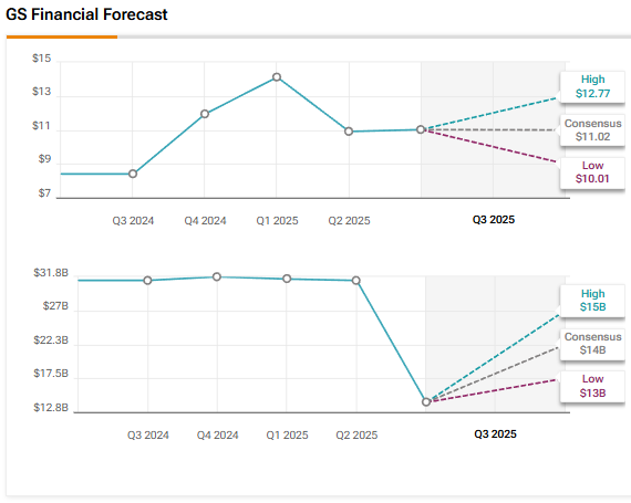Investment bank Goldman Sachs (GS) is scheduled to announce its third-quarter results on Tuesday, October 14. Analysts expect the company to gain from continued strength in trading revenue and investment banking fees amid a rebound in dealmaking activity. GS stock has risen 33.5% year-to-date, outperforming the broader market. Wall Street expects Goldman Sachs to report earnings per share (EPS) of $11.02, reflecting a 31% year-over-year growth.