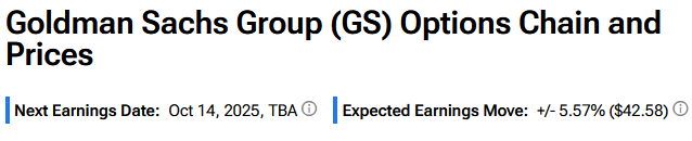 Indeed, it currently says that options traders are expecting about a 5.6% move in either direction in GS stock in reaction to Q3 2025 results.