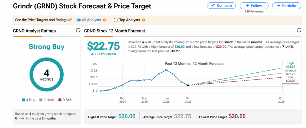 Turning to Wall Street, Grindr’s shares currently have a Strong Buy consensus rating, as seen on TipRanks. This is based on four Buys assigned by Wall Street analysts over the past three months.