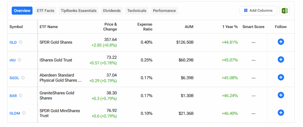 As you can see from TipRanks’ ETF Comparison Chart, gold ETFs have shown outstanding performance this year. The competition is close, but of the gold ETFs shown below, GLDM, the SPDR Gold MiniShares Trust, has increased the most.
