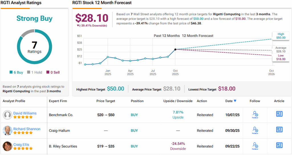 Wall Street’s stance is similarly conflicted. On the surface, analysts are bullish – 6 rate RGTI stock a Buy and one a Hold, resulting in a Strong Buy consensus. Yet, those same analysts assign an average price target of just $28.10, implying a 39% drop from current levels. It will be interesting to see whether those targets are revised, or if the stock comes back down to meet them. (See RGTI stock forecast)