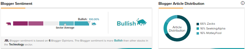 Per TipRanks data, financial blogger opinions are 100% Bullish on JBL, compared with the sector’s average of 68%.