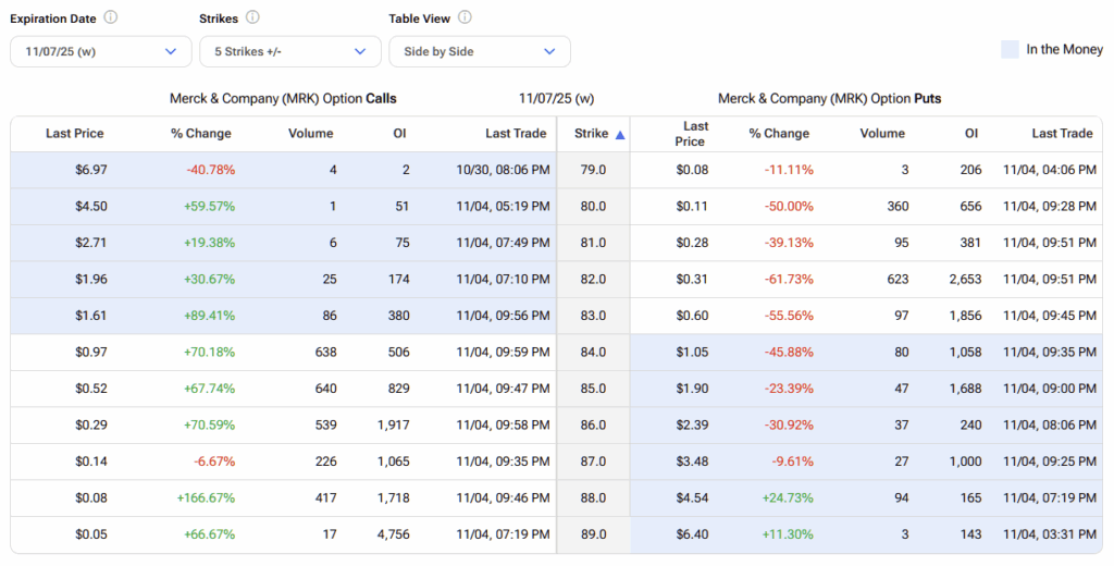 Last week’s earnings call didn’t deliver what Merck & Co. (MRK) investors were hoping for. While the company posted what initially appeared to be a solid earnings report, weaknesses in several business segments clouded the overall performance. As a result, MRK stock rose rather quickly on the day of its earnings news (October 30) but has since lost momentum and given up more than 50% of its gains. However, for eagle-eyed options traders willing to take a quantitative approach, the recent pullback may offer a compelling bullish opportunity.