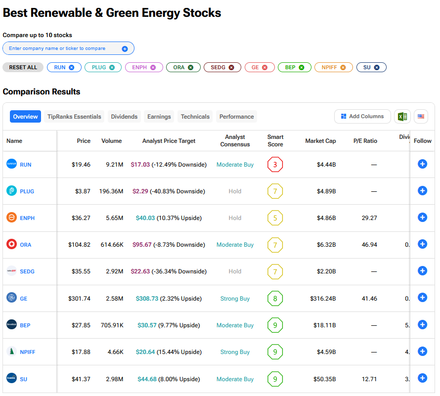We have rounded up the best green energy stocks to buy now using our TipRanks comparison tool.