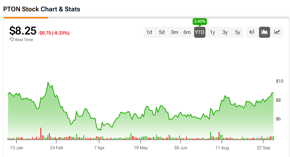 Peloton stock was up in pre-market trading on Wednesday but quickly gave up those gains after the opening bell. Investors appear unimpressed by the company’s new AI and product announcements, with PTON stock down about 8.33% but still up 3.45% year-to-date. The stock has also rallied 94.81% over the past 12 months.