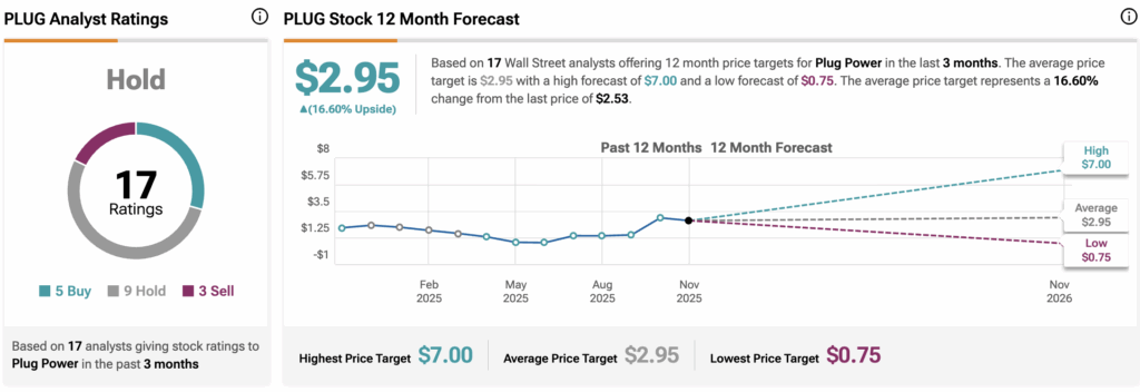 The average 12-month PLUG price target sits at $2.95, suggesting a modest 16.6% upside from current levels.