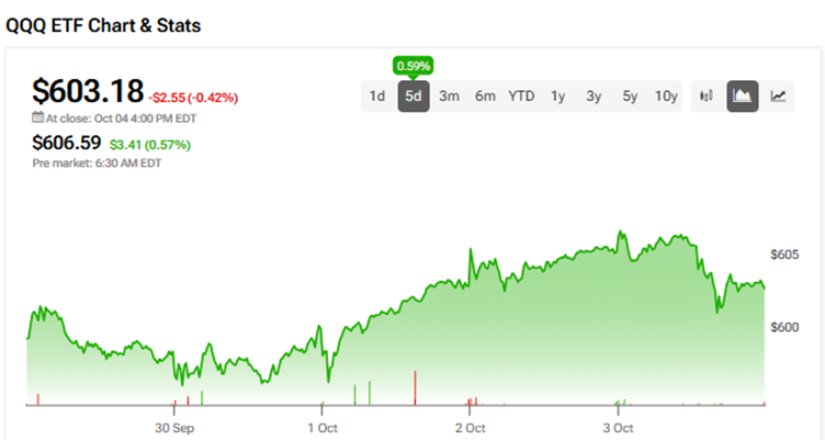 How is QQQ stock faring? The Invesco QQQ ETF has risen 0.59% over the past five days and is up 18.4% year-to-date.