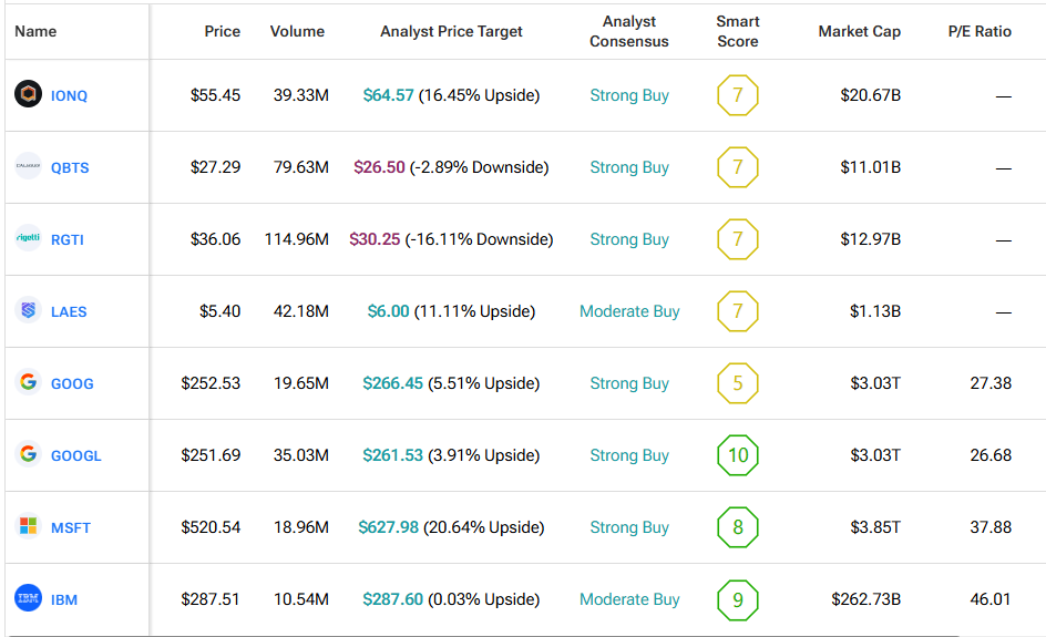 We used TipRanks’ Comparison Tool to line up leading quantum stocks mentioned in this piece. It’s a quick way to see how they stack up and where the field could be heading.