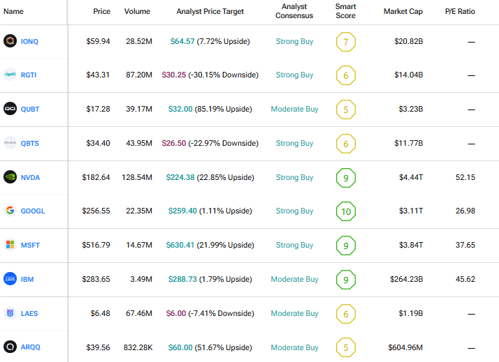 Using Tipranks’ Comparison tool, we’ve assembled and compared all the publicly traded quantum computing companies appearing in the article. It’s a great way for investors to gain a broader perspective on each ticker and the quantum computing industry as a whole.