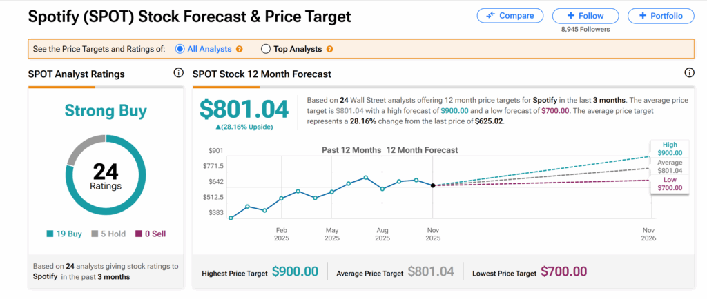 Moreover, the average SPOT price target of $801.04 indicates a 28% upswing.