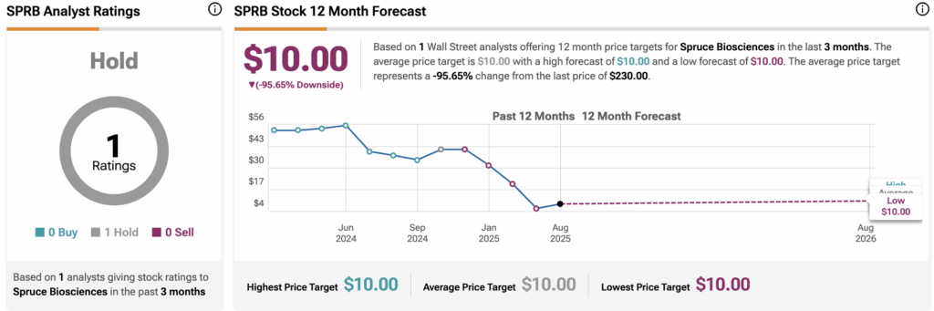 Despite the historic rally, Wall Street sentiment on Spruce Biosciences (SPRB) remains muted. The sole analyst covering the stock currently rates it a Hold, with no Buy or Sell recommendations issued in the past three months.