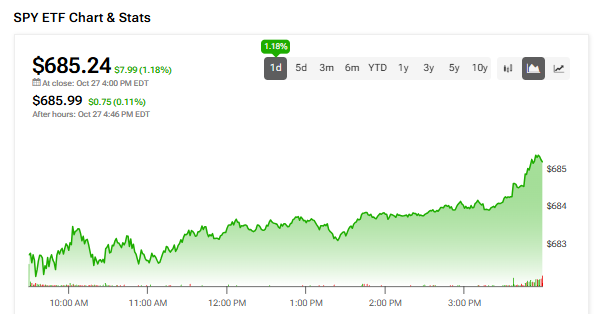 The SPDR S&P 500 ETF Trust (SPY) rallied 1.18% on Monday. Importantly, the ETF hit a new all-time high of $685.54 during the day. The upside was driven by big gains in tech stocks such as Nvidia (NVDA), Microsoft (MSFT), Apple (AAPL), and a strong 11% jump in Qualcomm (QCOM).