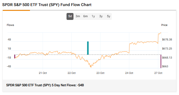 SPY’s 5-day net outflows totaled $4 billion, showing that investors pulled capital from SPY over the past five trading days. Meanwhile, its three-month average trading volume is 74.02 million shares.