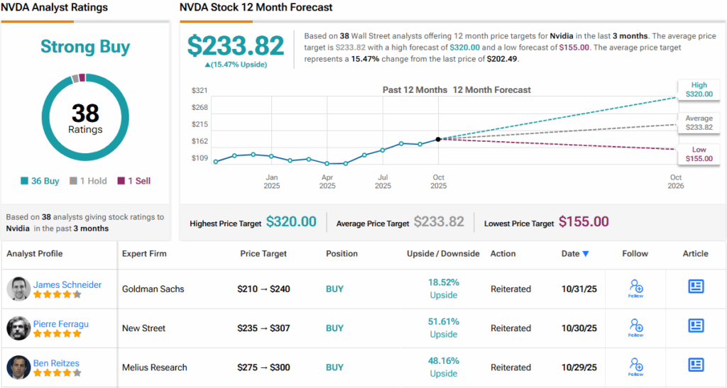 That’s hardly a controversial take on Wall Street right now. NVDA stock claims a Strong Buy consensus rating, based on a lopsided mix of 36 Buys and 1 Hold and Sell, each. The forecast calls for 12-month returns of ~15%, considering the average target clocks in at $233.82. (See Nvidia stock forecast)