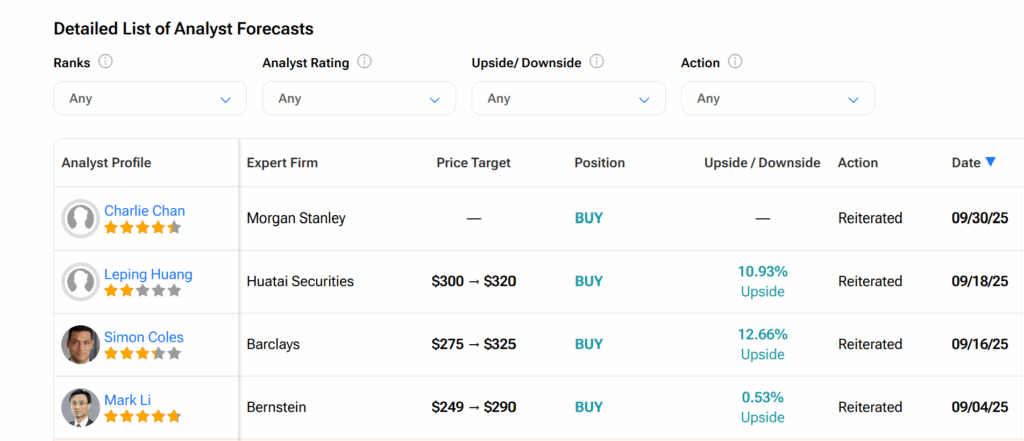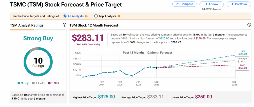 Across Wall Street, TSMC’s shares currently boast a Strong Buy consensus recommendation, as seen on TipRanks. This is based on nine Buys and one Hold assigned by 10 Wall Street analysts over the past three months. However, the average TSM price target of $283.11 indicates nearly 2% of downside risk.
