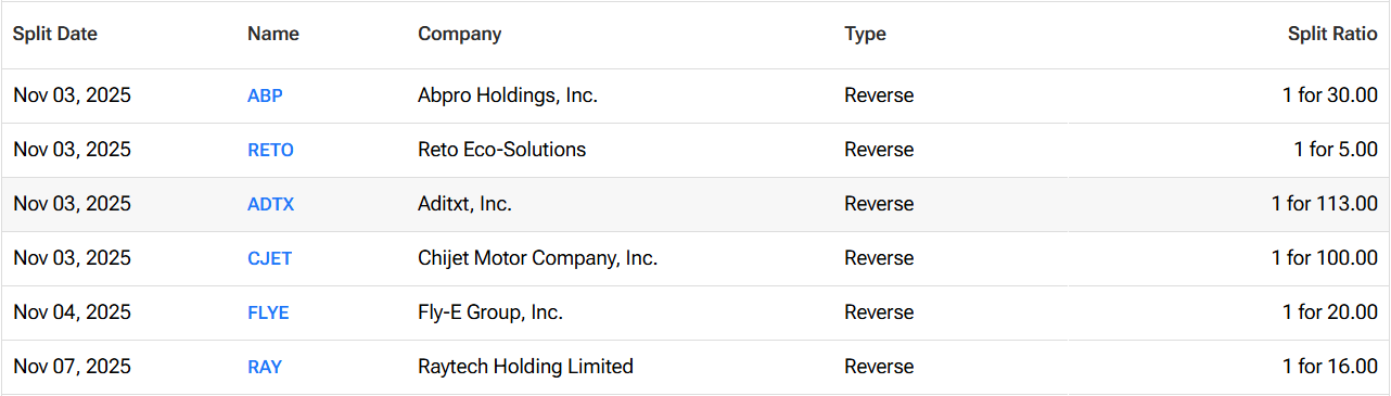 ReTo Eco-Solutions (RETO) – China-based ReTo Eco-Solutions manufactures equipment for eco-friendly construction materials and operates in areas like recycled aggregates, concrete products, and urban ecological systems. The company also provides engineering services for environmental restoration and green-infrastructure projects, aiming to support sustainable urban development. On October 30, the company announced a 1-for-5 reverse stock split, set to become effective on November 3, as part of its efforts to satisfy Nasdaq’s minimum bid price listing requirement.