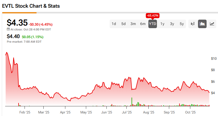 EVTL shares have had a rough start to 2025, with a 65% year-to-date decline.