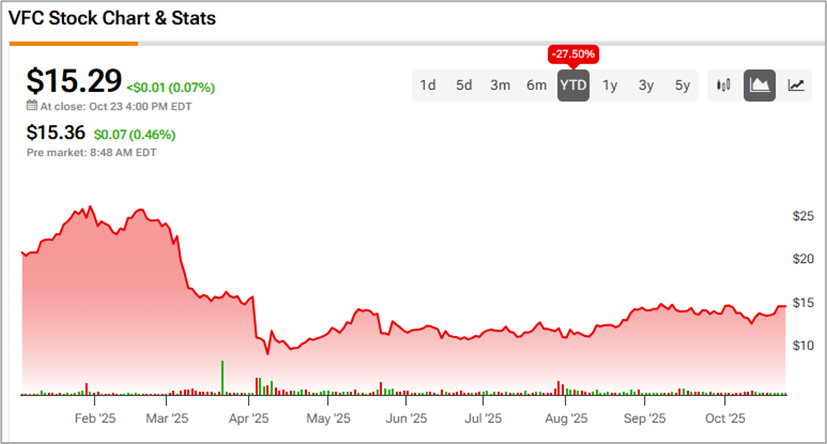 A class action lawsuit was filed against VF Corp. (VFC) on September 12, 2025. The plaintiffs (shareholders) alleged that they bought VFC stock at artificially inflated prices between October 30, 2023, and May 20, 2025 (Class Period) and are now seeking compensation for their financial losses. Investors who bought VFC stock during that period can click here to learn about joining the lawsuit.