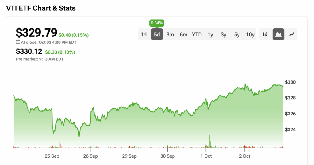 How is VTI stock faring? The Vanguard Total Stock Market ETF (VTI) is up 0.34% over the past five days and up 14.7% year-to-date.