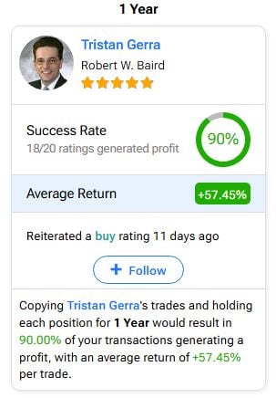 The TipRanks All-star Analyst of the Day title goes to analyst Tristan Gerra of Robert W. Baird. Remarkably, Gerra ranks #452 out of the 10,000 Wall Street analysts tracked by TipRanks. One of the key stocks in his coverage is Advanced Micro Devices (AMD), for which he is the Best analyst over a one-year time frame.