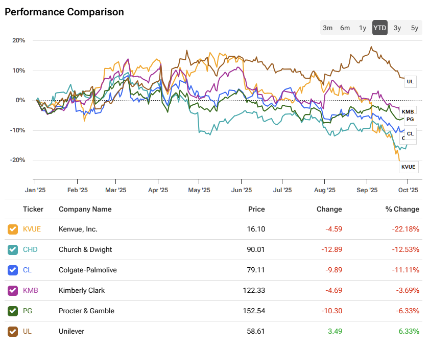Taken together, when compared to its peers, KVUE stock has suffered the most year-to-date.