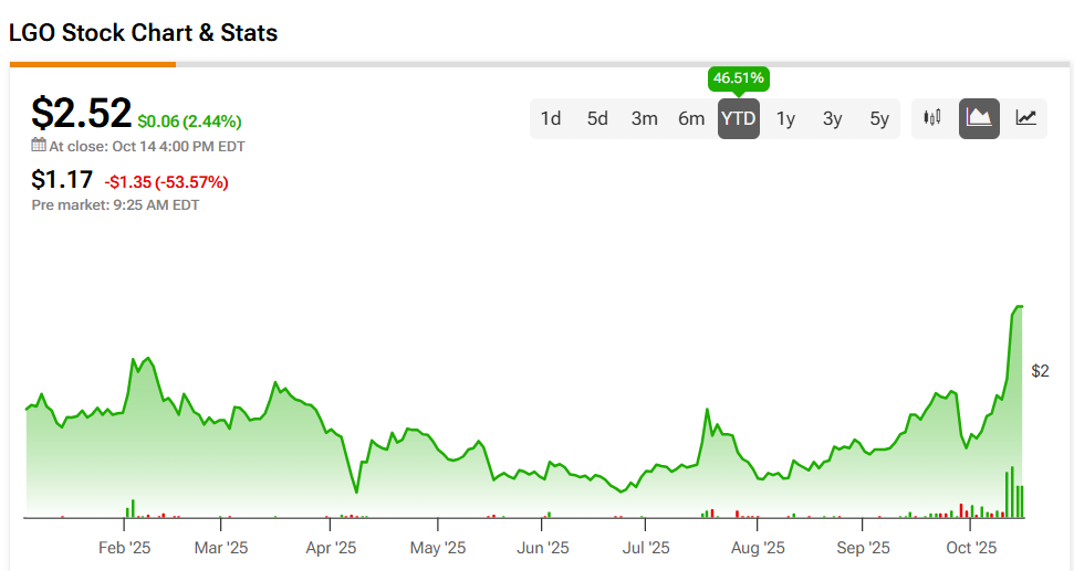 Largo Resources stock was down 53.57% in pre-market trading on Wednesday, following a 2.44% rally yesterday. Even so, the shares have rallied 46.51% year-to-date and 27.92% over the past 12 months. Today’s drop makes sense as the registered direct offering and private placement dilute current shareholders’ stakes. The share sale price was also well below the stock’s prior closing price of $2.52.
