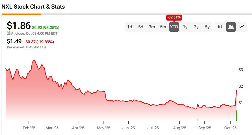 Nexalin Technology (NXL) dove on Thursday after the medical device company’s shares underwent a major rally on Wednesday. That rally was fueled by its updated clinical trial data for Gen-2 Nexalin DIFS as a treatment for Alzheimer’s disease. The company’s study found that Gen-2 Nexalin DIFS improved cognitive performance and enhanced brain network connectivity in patients with mild Alzheimer’s.