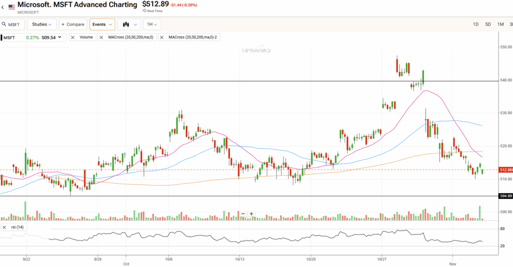 Still, that didn’t stop the market from giving Microsoft the cold shoulder, with the stock staying range-bound between $500 and $540 over the past month.