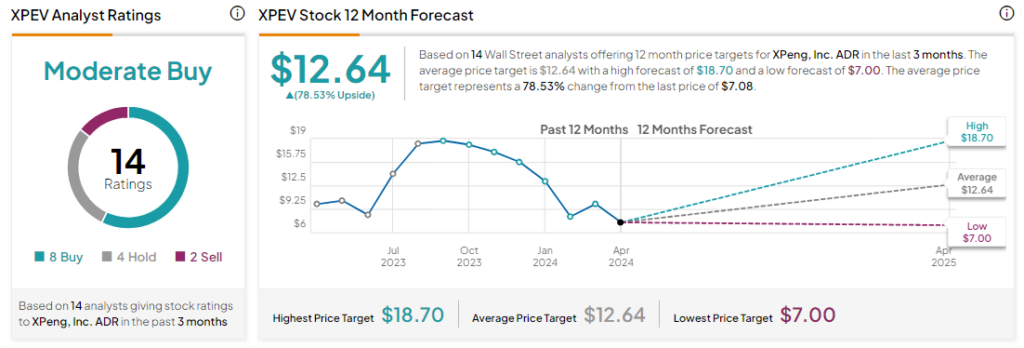 Analysts remain cautiously optimistic about XPEV stock, with a Moderate Buy consensus rating based on eight Buys, four Holds, and two Sells. Year-to-date, XPEV has declined by more than 45%, and the average XPEV price target of $12.64 implies an upside potential of 78.5% from current levels.