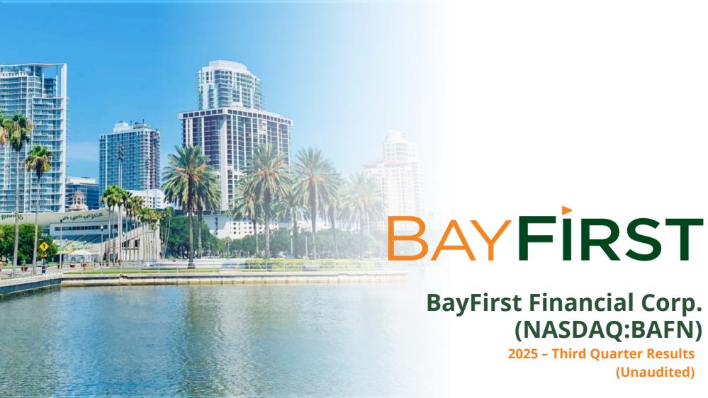 BayFirst Financial Corp. operates as the bank holding company for First Home Bank that provides commercial and consumer banking services for businesses and individuals. The company offers checking and savings accounts, and certificates of deposit. It also provides home loans, including residential mortgages, home equity loans, and home equity lines of credit; and business lending services comprising minority lending programs, PPP loan forgiveness services, SBA loans, and commercial lending services. In addition, the company offers treasury management, merchant, online, and investment services; and credit cards. As of January 26, 2022, it operated seven full-service office locations in St. Petersburg, Seminole, Pinellas Park, Clearwater, Sarasota, Tampa, and Belleair Bluffs, Florida; and 23 mortgage loan production offices. The company was formerly known as First Home Bancorp, Inc. and changed its name to BayFirst Financial Corp. in May 2021. BayFirst Financial Corp. was founded in 1999 and is headquartered in Saint Petersburg, Florida.