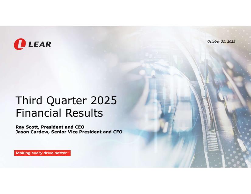 Lear Corporation designs, develops, engineers, manufactures, assembles, and supplies automotive seating, and electrical distribution systems and related components for automotive original equipment manufacturers in North America, Europe, Africa, Asia, and South America. Its Seating segment offers seat systems, seat subsystems, keyseat components, seat trim covers, seat mechanisms, seat foams, and headrests, as well as surface materials, such as leather and fabric for automobiles and light trucks, compact cars, pick-up trucks, and sport utility vehicles. The company's E-Systems segment provides electrical distribution and connection systems that route electrical signals and networks; and manage electrical power within the vehicle for various powertrains. This segment's products comprise wire harnesses, terminals and connectors, engineered components, and junction boxes; electronic system products, including body domain control modules, smart and passive junction boxes, gateway and communication modules, integrated power modules, and high voltage switching and power control systems. It also offers software and connected services comprising Xevo Market, an in-vehicle commerce and service platform; and software and services for the cloud, vehicles, and mobile devices. In addition, this segment provides cybersecurity software; advanced vehicle positioning for automated and autonomous driving applications; and short-range communication and cellular protocols for vehicle connectivity. It offers its products and services under the XEVO, GUILFORD, EAGLE OTTAWA, ConfigurE+, INTUTM, LEAR CONNEXUSTM, EXO, JOURNEYWARE, ProTec, SMART JUNCTION BOX, STRUCSURE, AVENTINO, and TeXstyle brands. Lear Corporation was founded in 1917 and is headquartered in Southfield, Michigan.