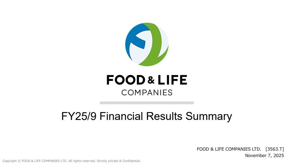 FOOD & LIFE COMPANIES LTD. (JP:3563)