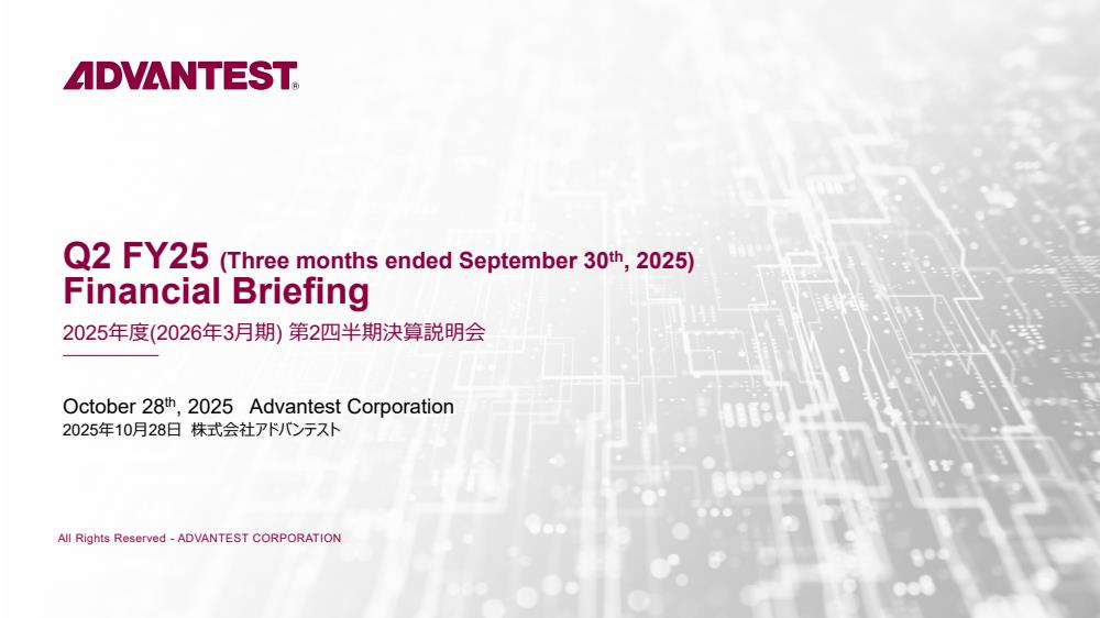 Advantest Corporation manufactures and sells semiconductor and component test system products and mechatronics-related products. It operates through three segments: Semiconductor and Component Test System; Mechatronics System; and Services, Support and Others. The Semiconductor and Component Test System segment provides customers with test system products for the semiconductor industry and the electronic parts industry. This segment offers test systems for SoC semiconductor devices; and test systems for memory semiconductors devices. The Mechatronics System segment provides test handlers; mechatronic-applied products for handling semiconductor devices; and device interfaces, which serve as interfaces with the devices that are measured. This segment also engages in the operations related to nano-technology products. The Services, Support and Others segment provides customer solutions for the semiconductor and component test system and mechatronics system segments; and support services. This segment is also involved in the sale of consumables and used products; and equipment lease business and others. In addition, the company engages in the research and development activities measuring and testing technologies. Advantest Corporation serves fabless semiconductor companies, foundries, and test houses, as well as industrial, design, and manufacturing companies in Japan, rest of Asia, the United States, and Europe. Advantest Corporation has collaboration with STMicroelectronics on advanced automated test cell for IC Testing; and partnership with PDF Solutions Inc. for cloud-based software solutions. The company was founded in 1954 and is headquartered in Tokyo, Japan.