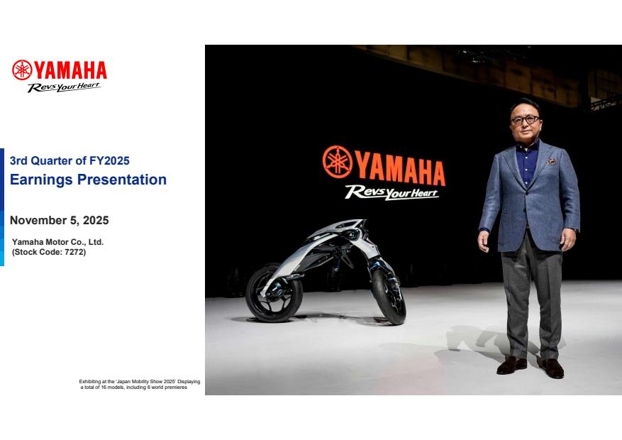 Yamaha Motor Co., Ltd. (Ticker: 7272) is a Japanese multinational corporation primarily engaged in the manufacturing of motorcycles, marine products, and other motorized products. Established in 1953, Yamaha is known for its innovation in the powersports sector and produces a wide range of products including motorcycles, all-terrain vehicles (ATVs), outboard motors, and personal watercraft. The company also has a presence in the robotics and industrial machinery markets, leveraging its engineering expertise across various sectors.